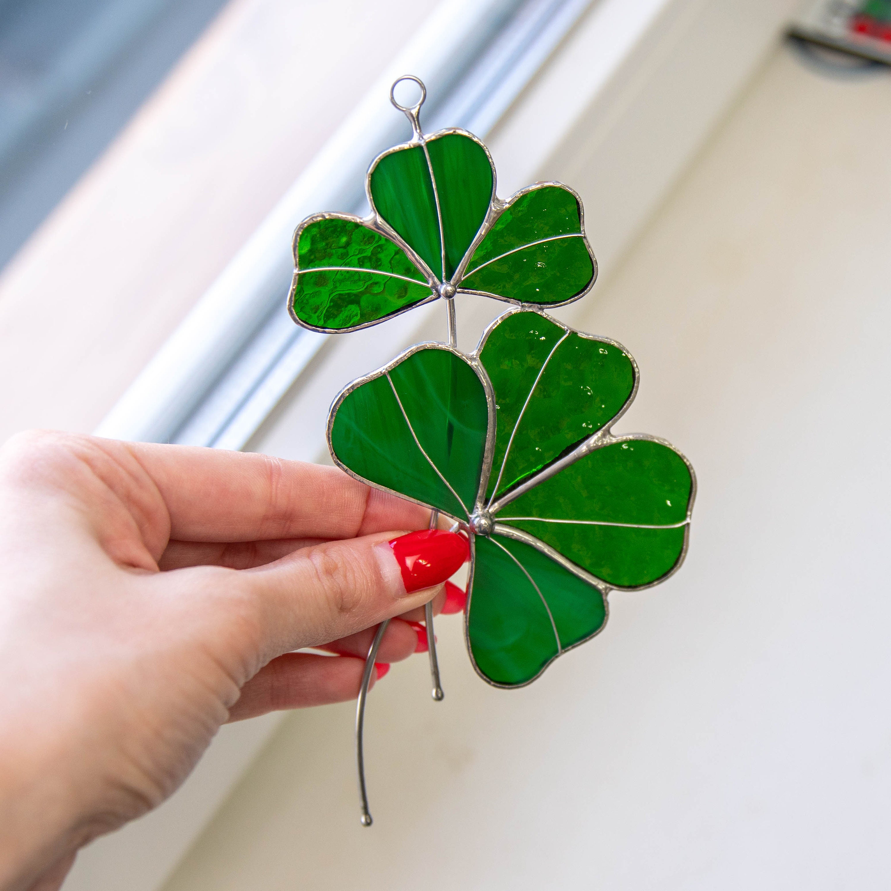 Clover stained glass suncatcher Birthday gifts Stained glass window hangings St Patricks Day