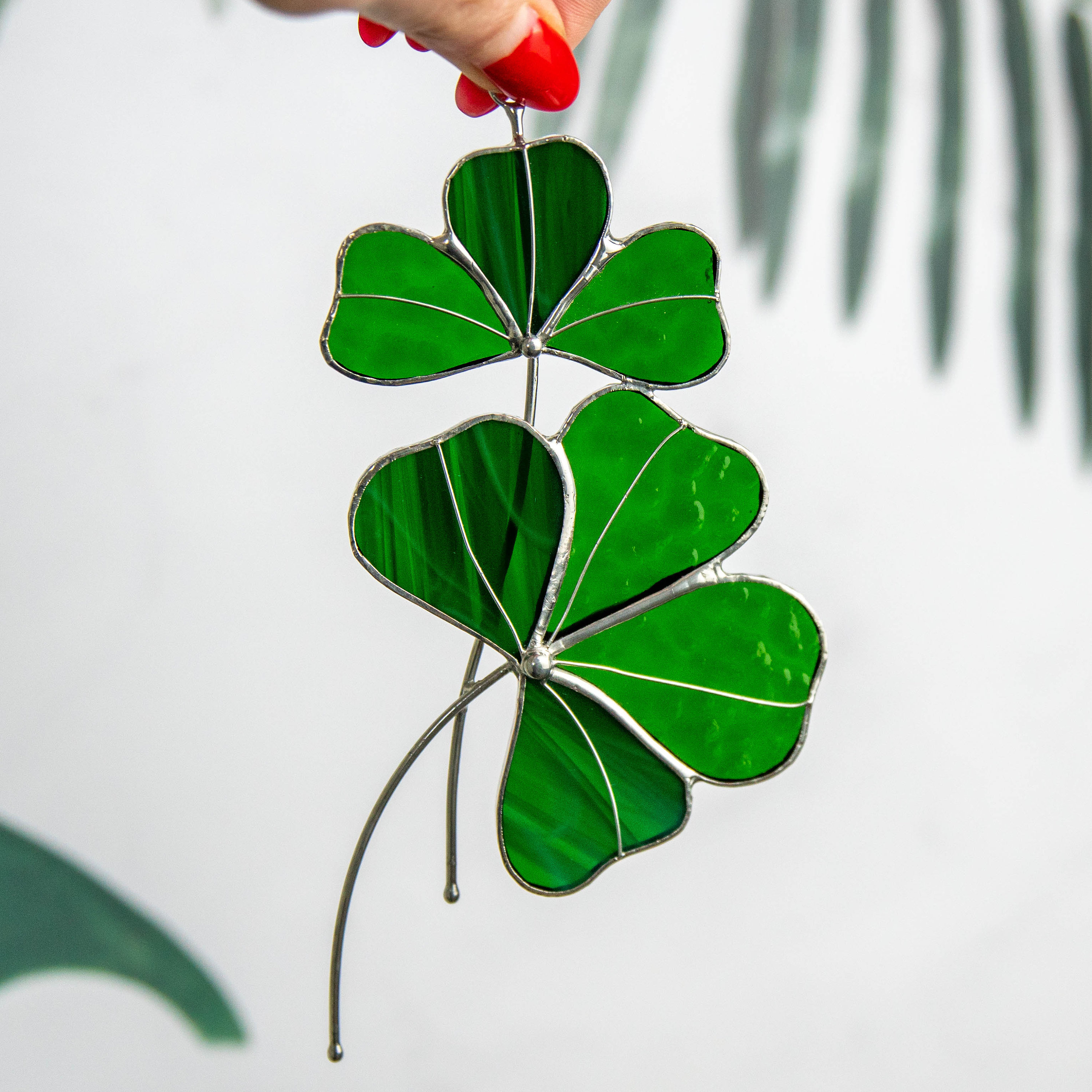 The clover is a sign that someone is thinking of you. It is associated with good luck and blessings. This window hanging suncatcher is made of stained glass and will beautify your interior and garden. Moreover, the clover is considered a symbol of protection. It will undoubtedly be a valuable gift for someone special 🎁