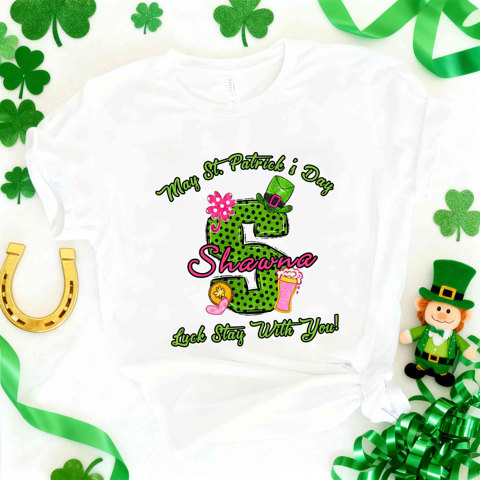 Playful St. Patrick’s Day Design - This shirt features a bold green polka-dot alphabet paired with a cute St. Patrick’s Day accent, giving it a cheerful Irish charm that stands out at any celebration. The clean, stylish lettering adds a fun twist while keeping the look fresh for both kids and adults.