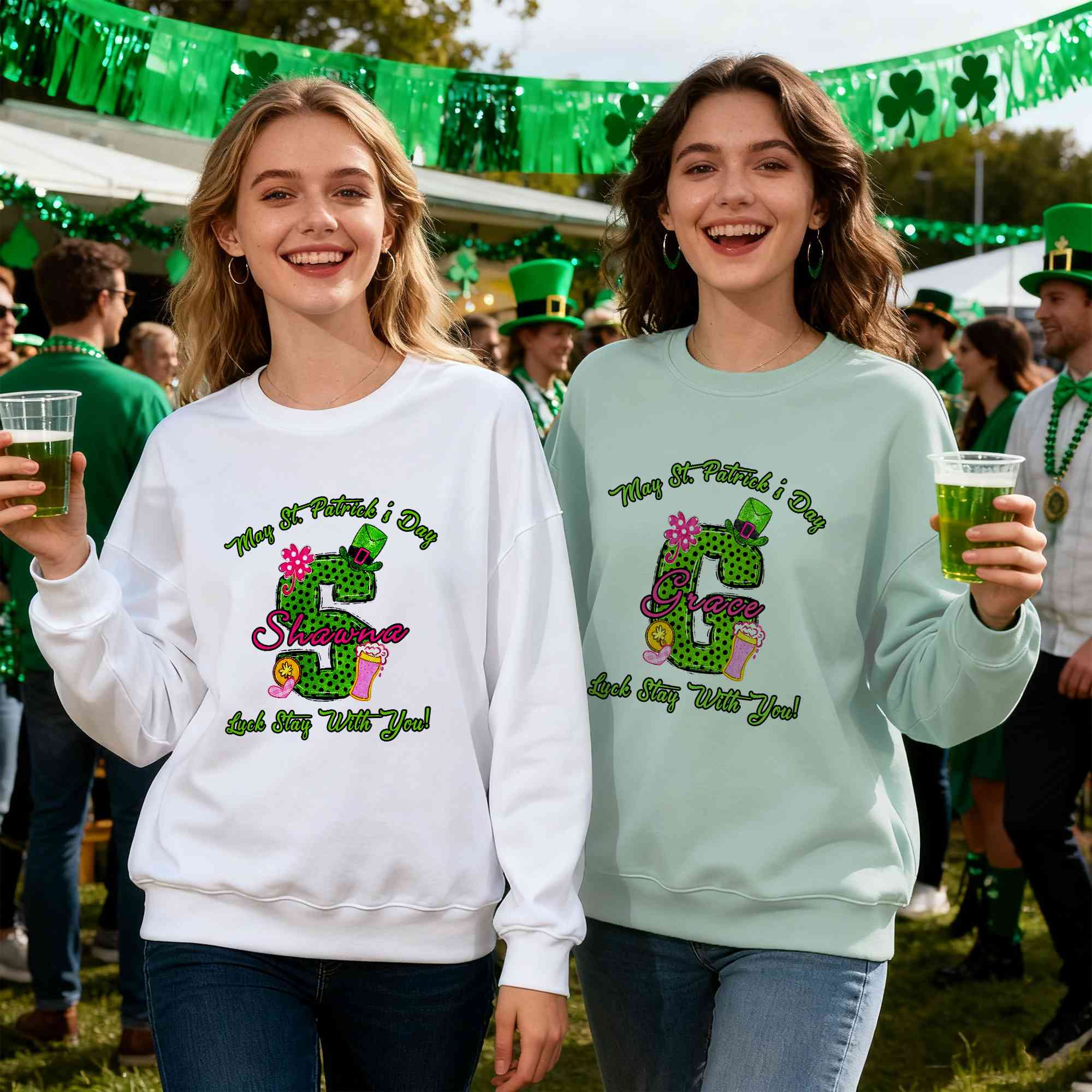 Soft Materials & Vibrant Finish - Crafted from comfortable fabric with a smooth fit, this T-shirt or sweatshirt holds its bright green tones beautifully. The print stays crisp through repeated wear, offering a pleasant feel for long days of celebrating or casual outings.