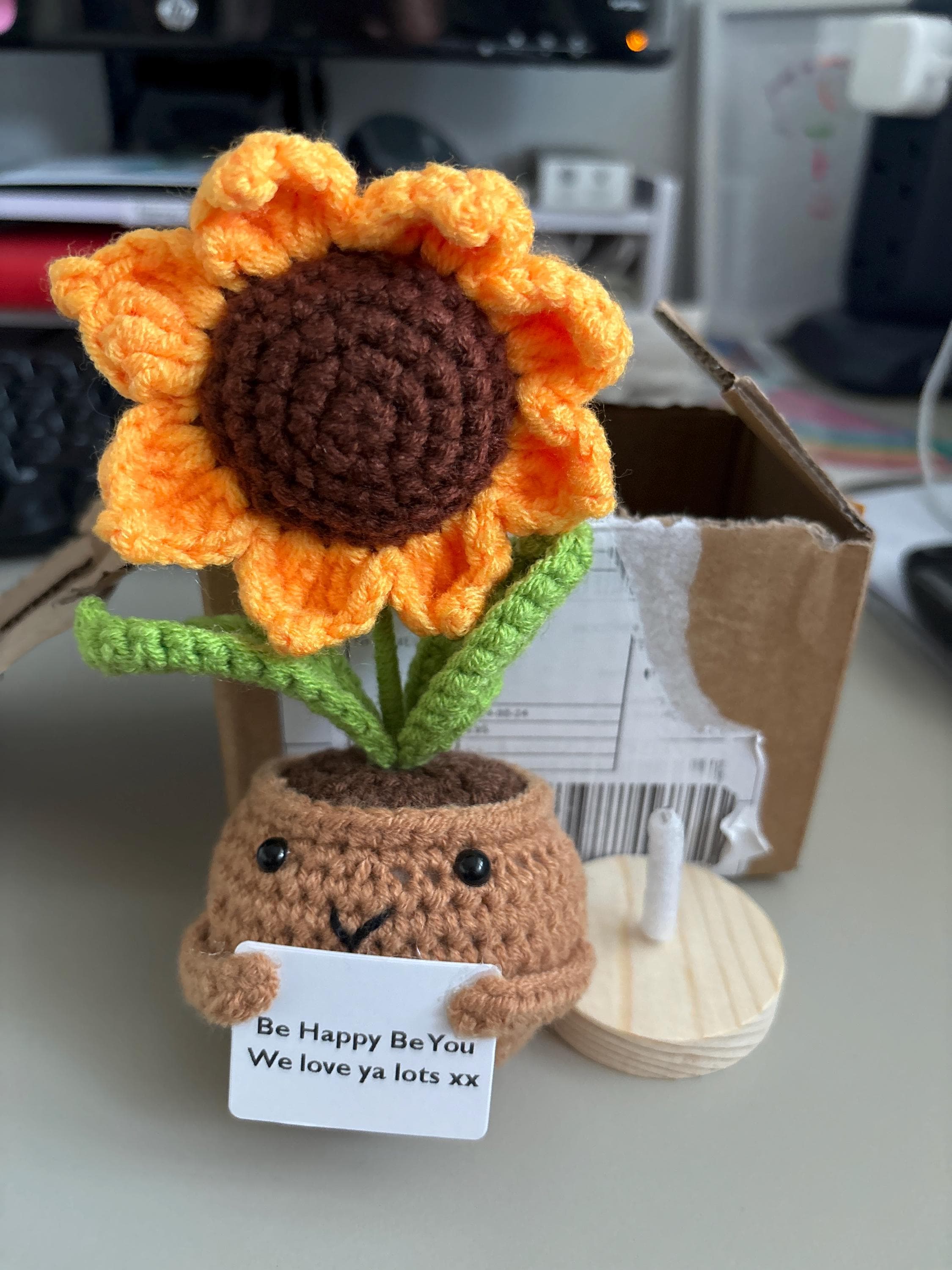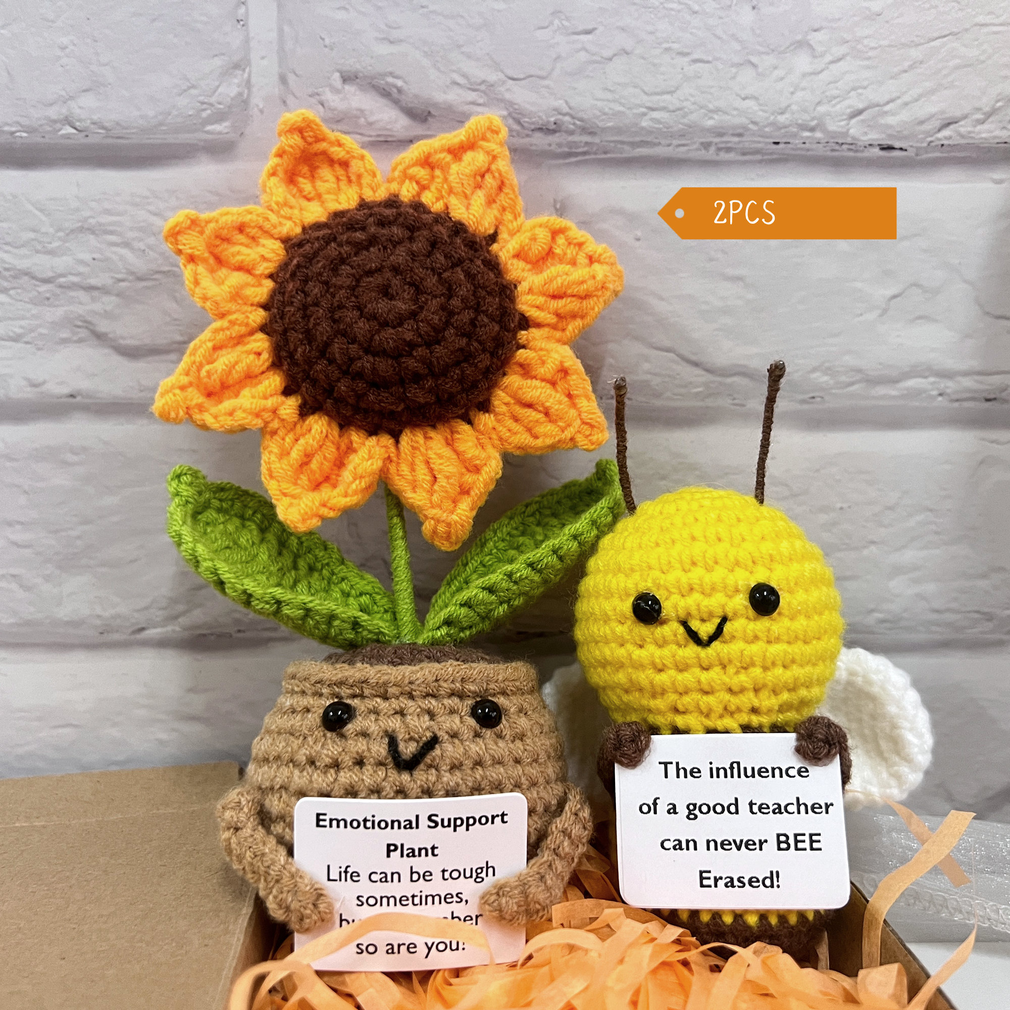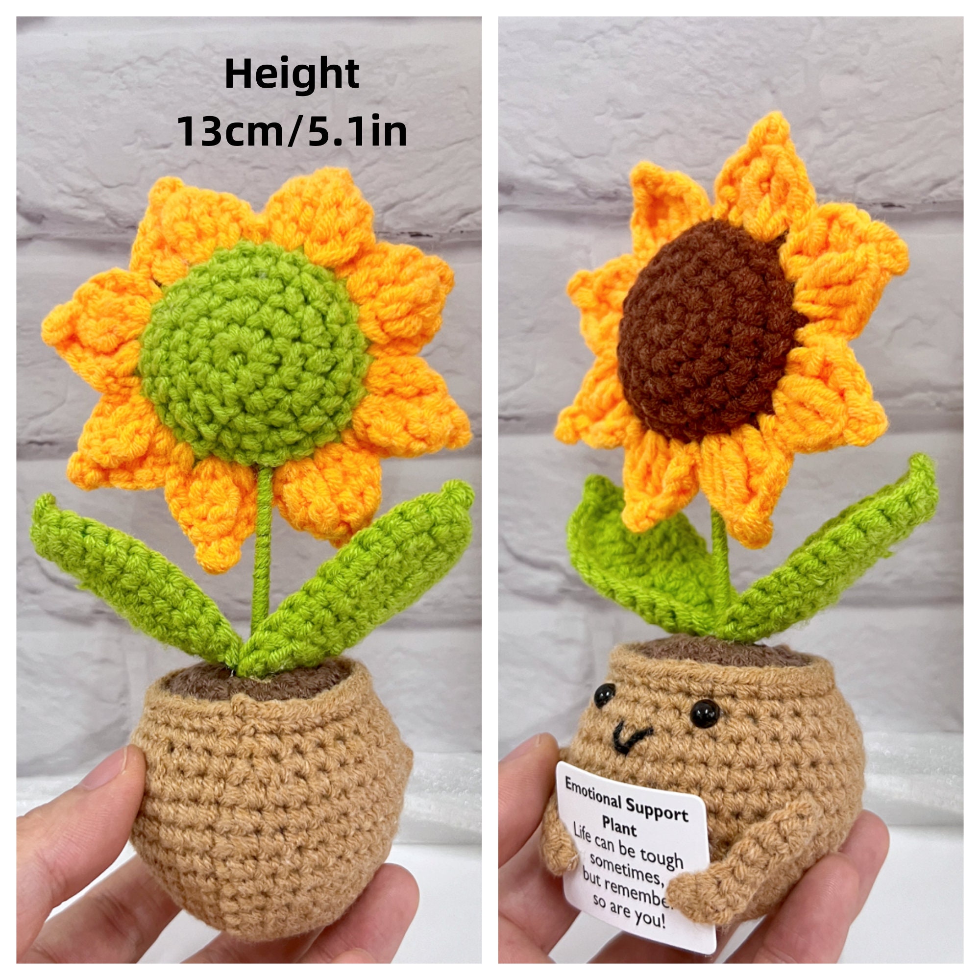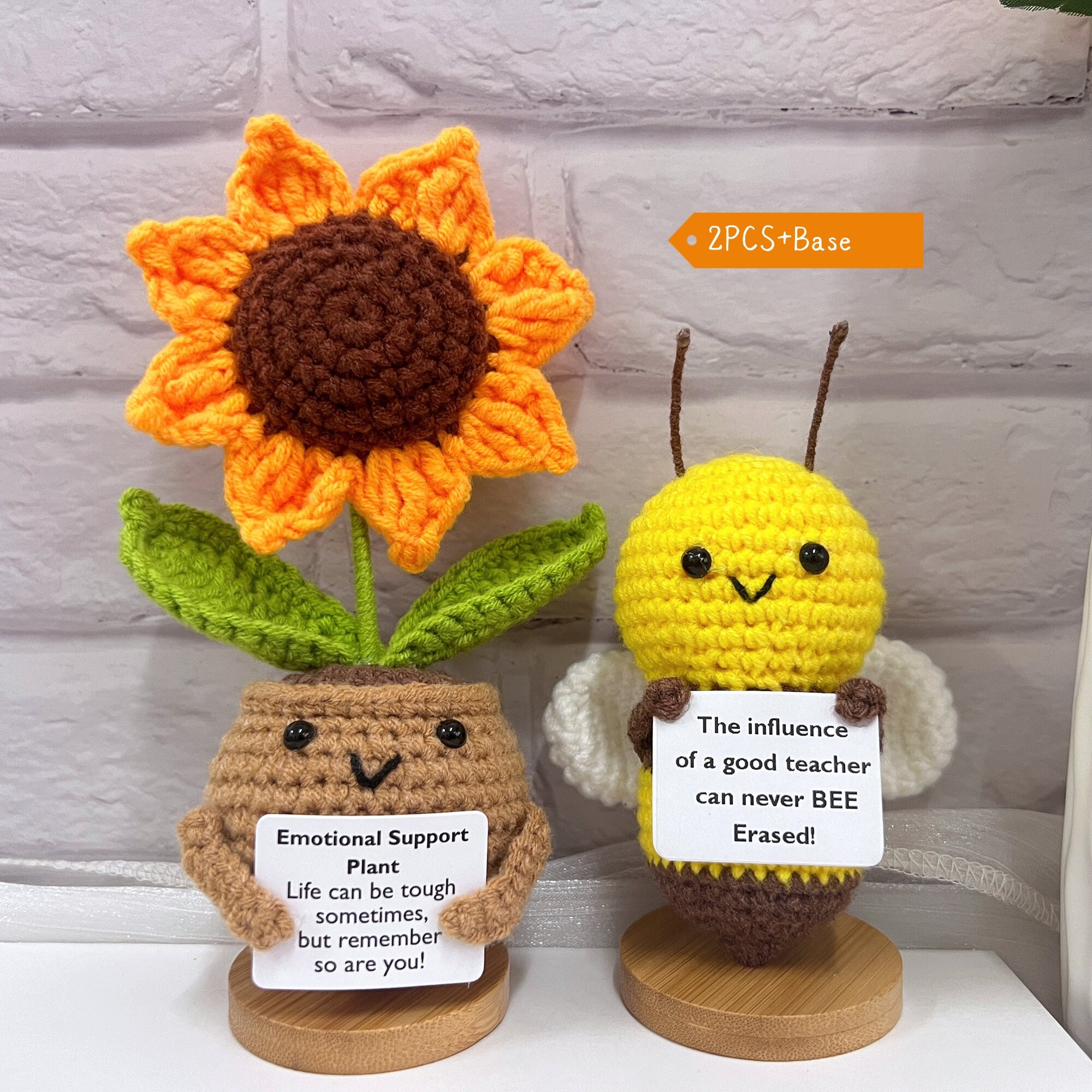 Presenting our charming handmade crochet sunflower potted plants and bees, carefully crafted to bring joy and emotional support to any environment. More than just decorations, these pieces embody heartfelt appreciation and encouragement.