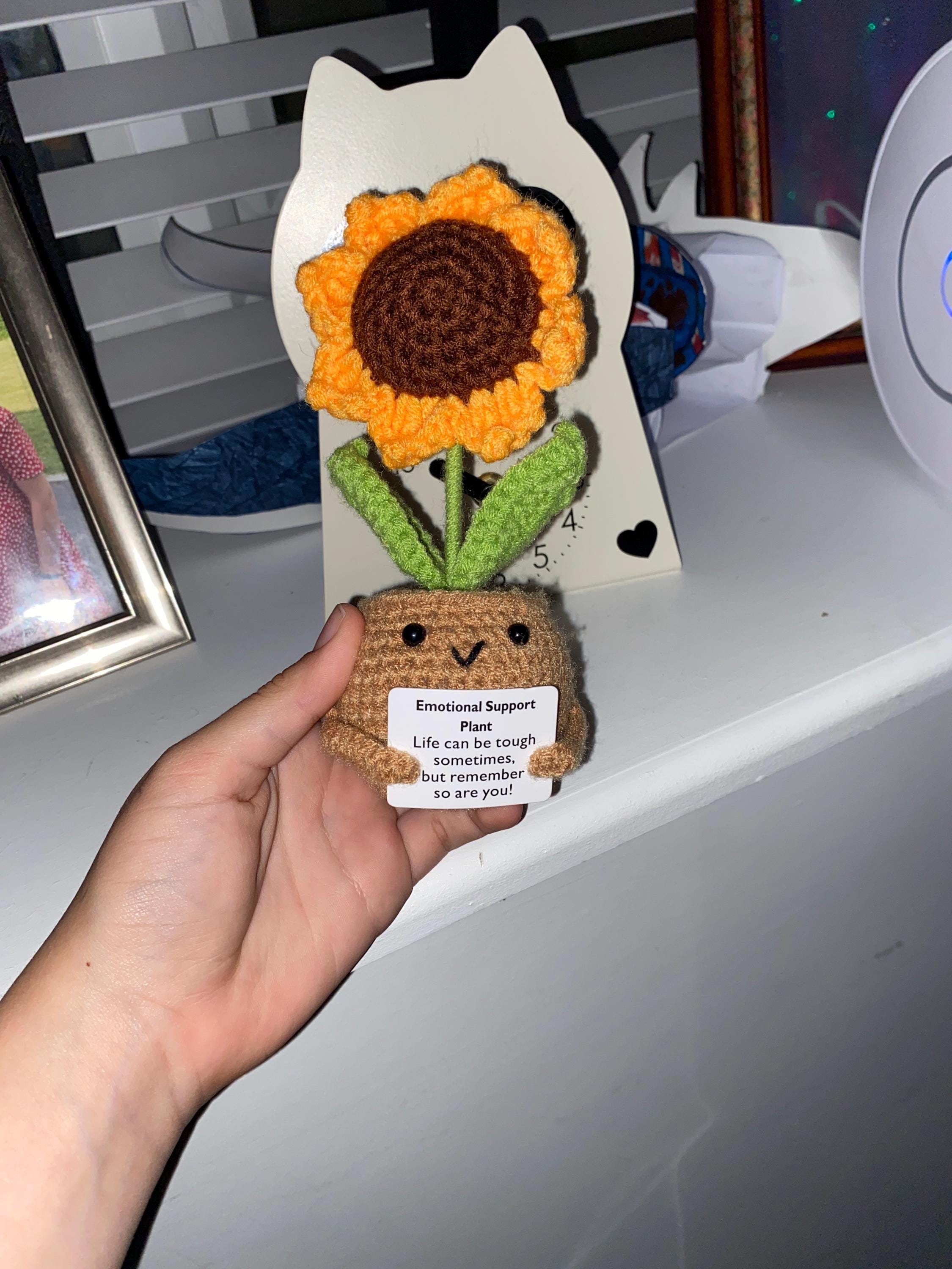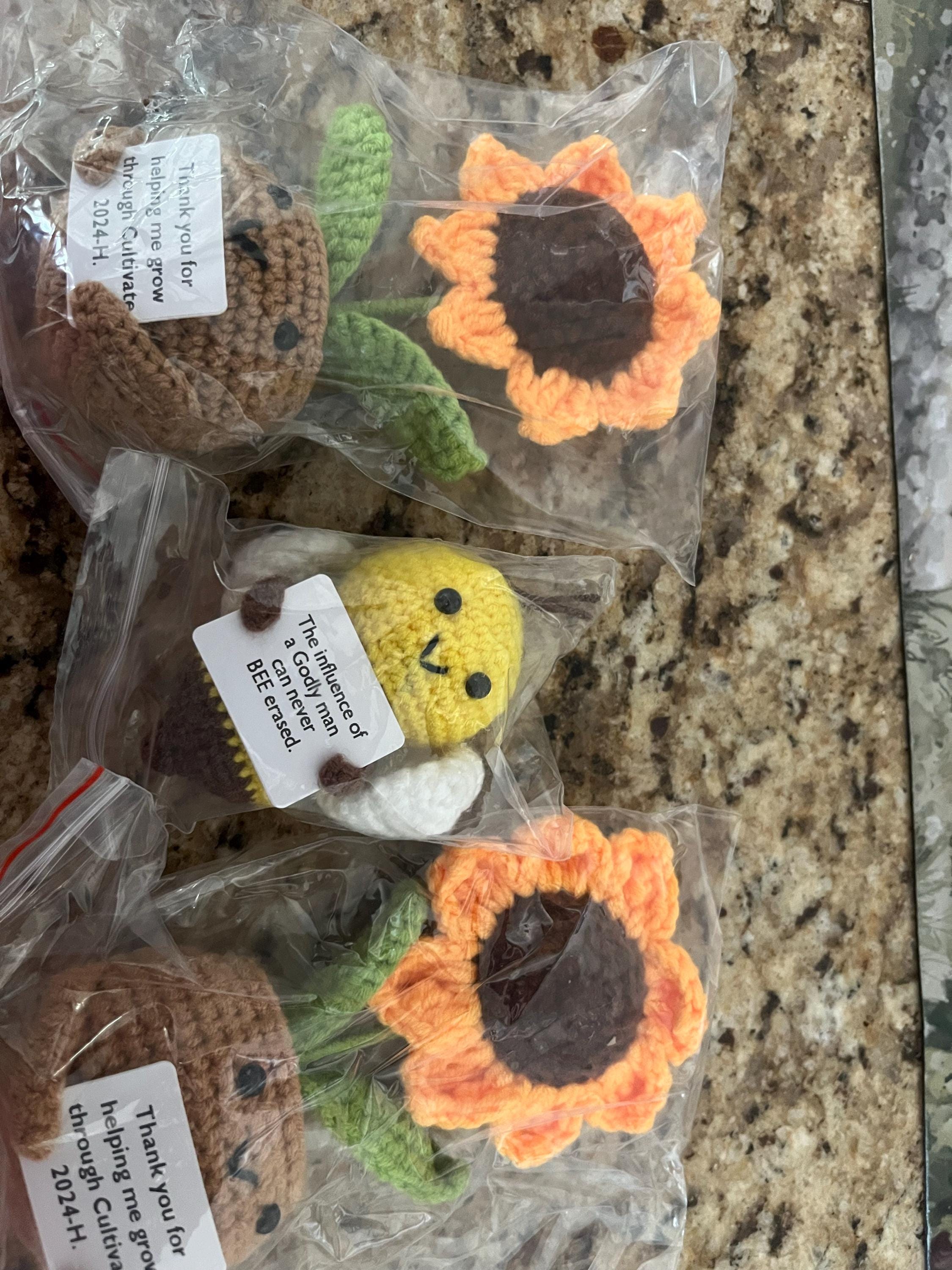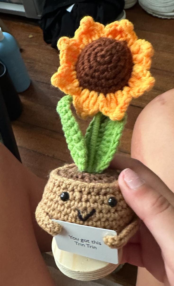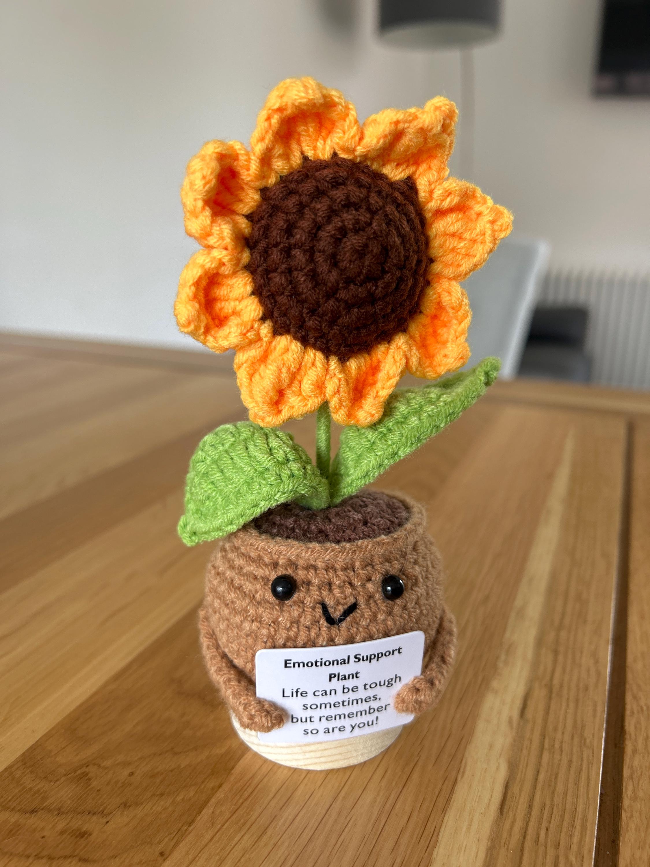 Presenting our charming handmade crochet sunflower potted plants and bees, carefully crafted to bring joy and emotional support to any environment. More than just decorations, these pieces embody heartfelt appreciation and encouragement.