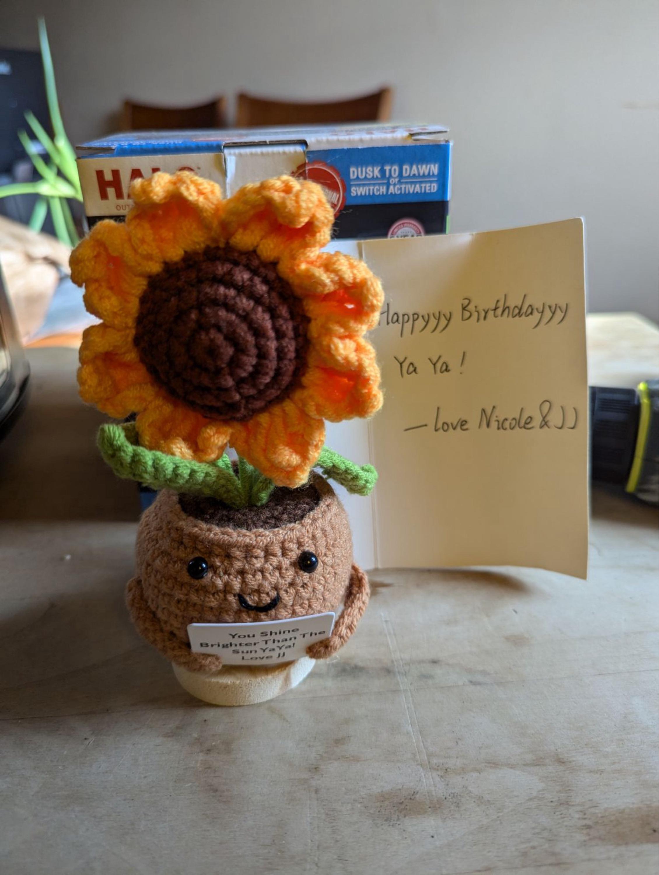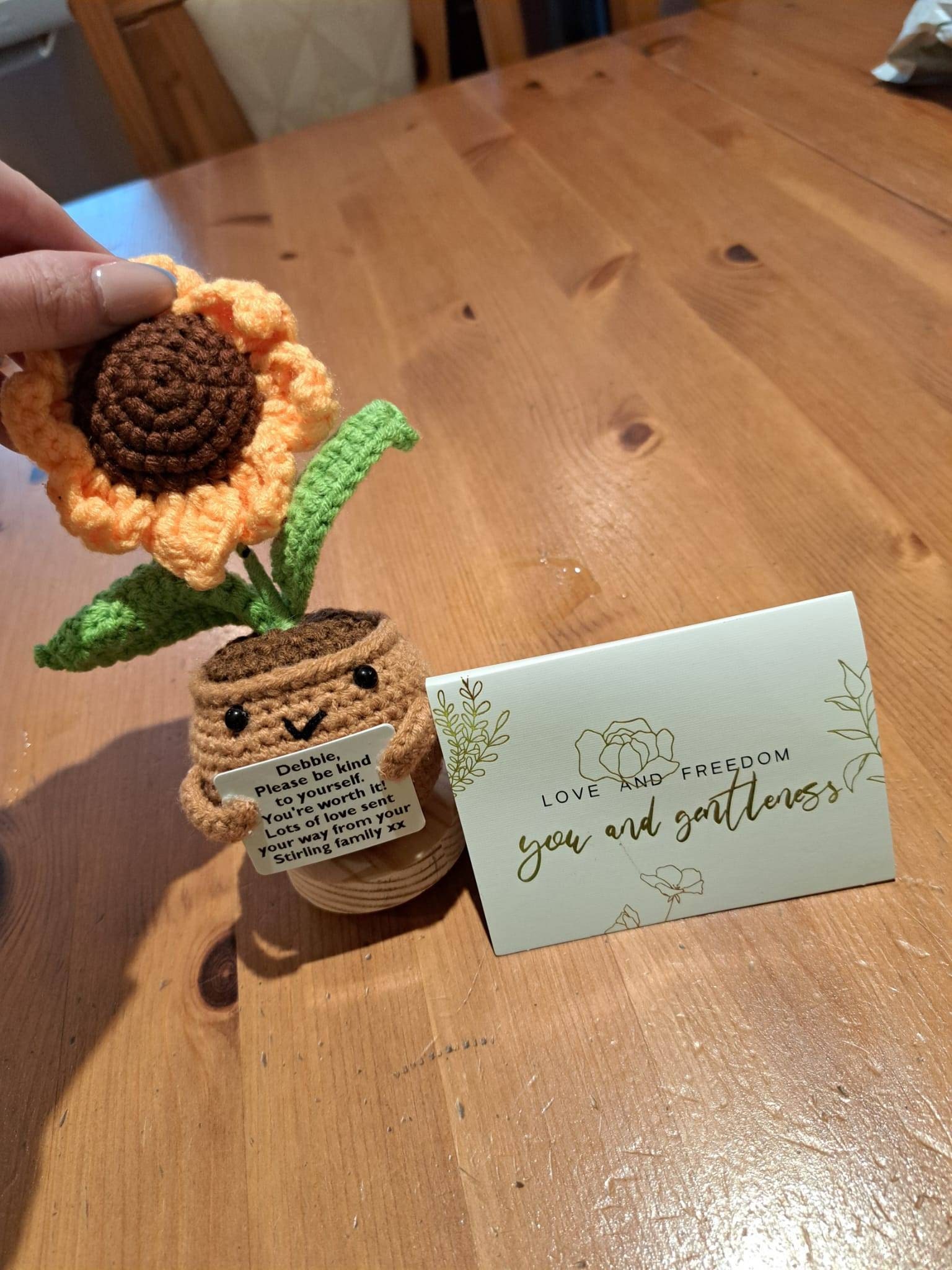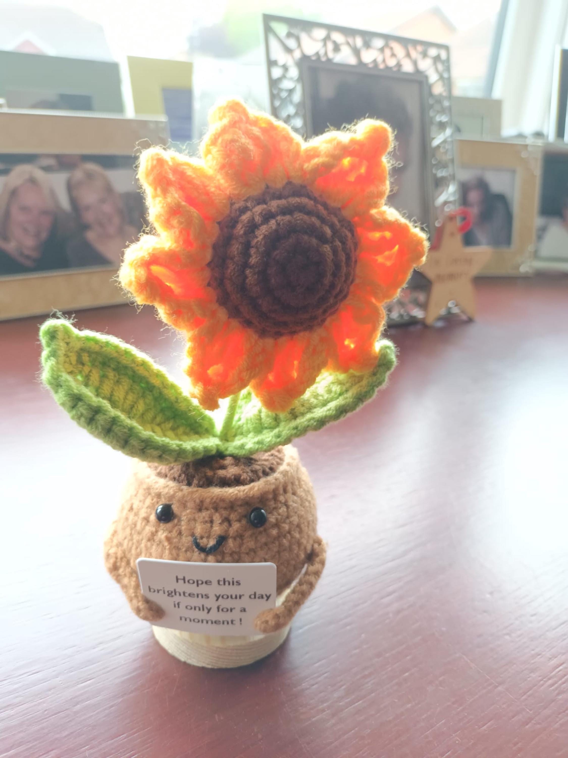 Choose our Handmade Crochet Sunflower Potted Plant and Bee to convey your sincere feelings and lift your spirits with a touch of handmade beauty.
