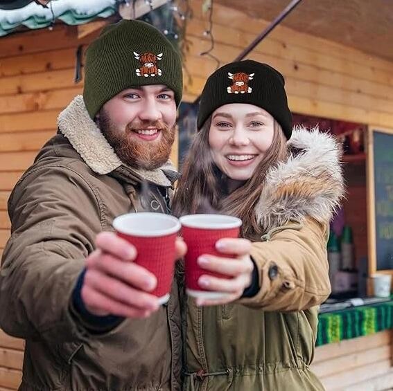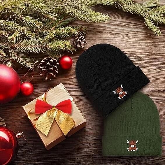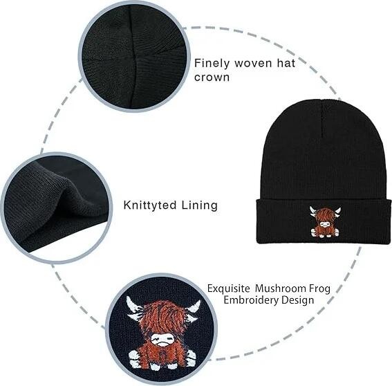 A beautiful knitted Highland Cow knitted casual hat that is popular this year, made of soft knitted material and embroidered with a cute Highland Cow pattern on the front cuff🔥🔥🔥