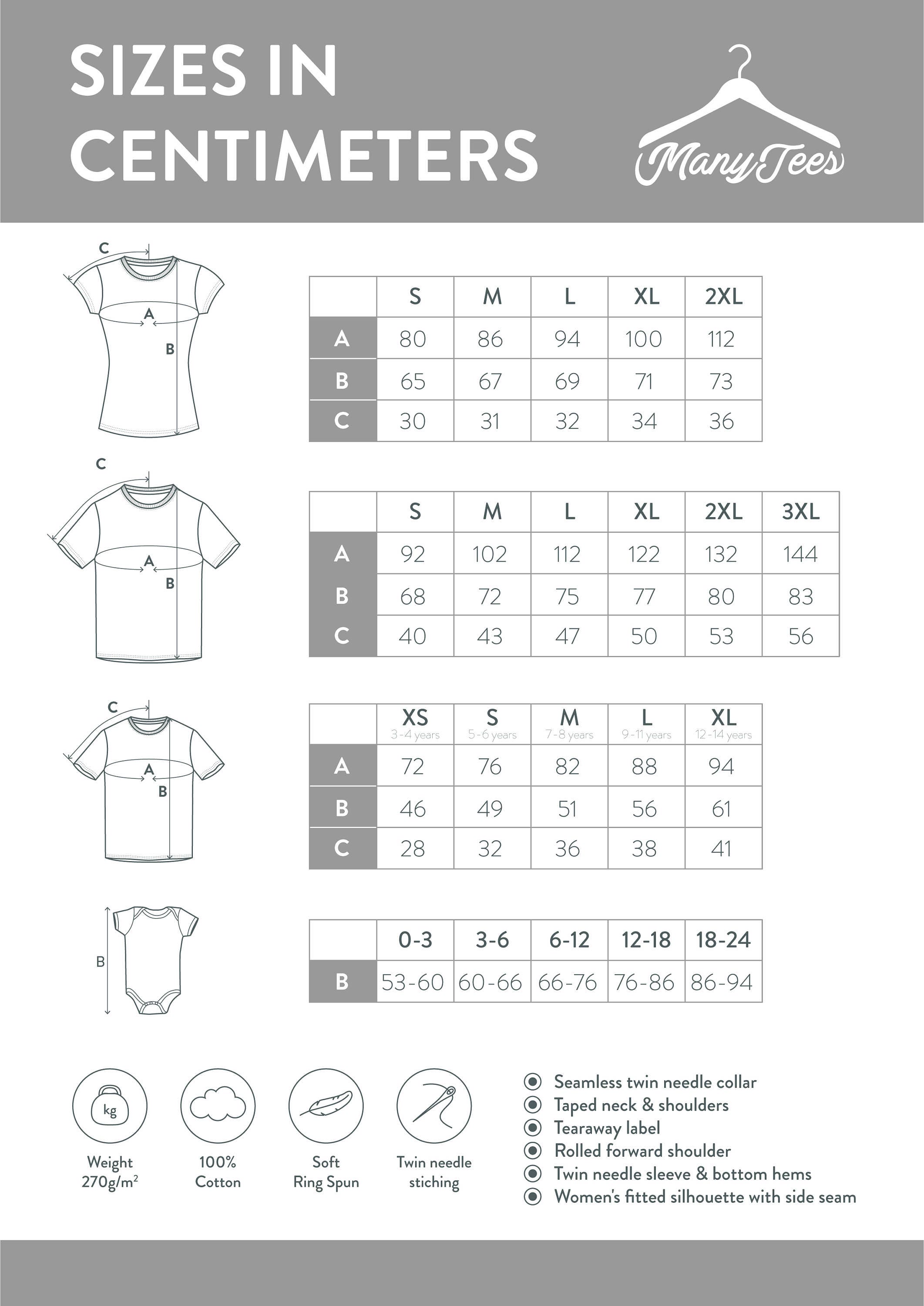 SIZES IN CENTIMETERS