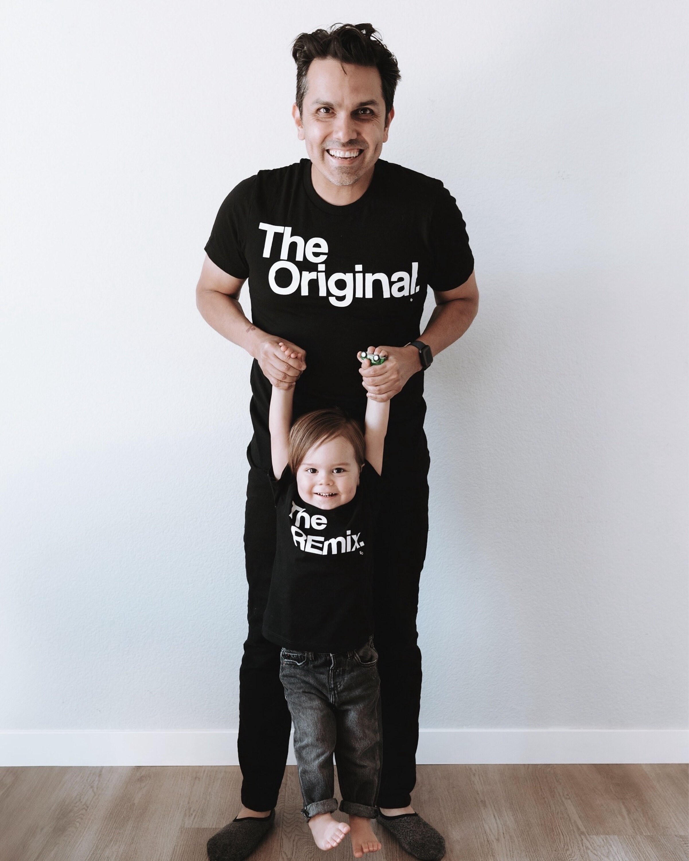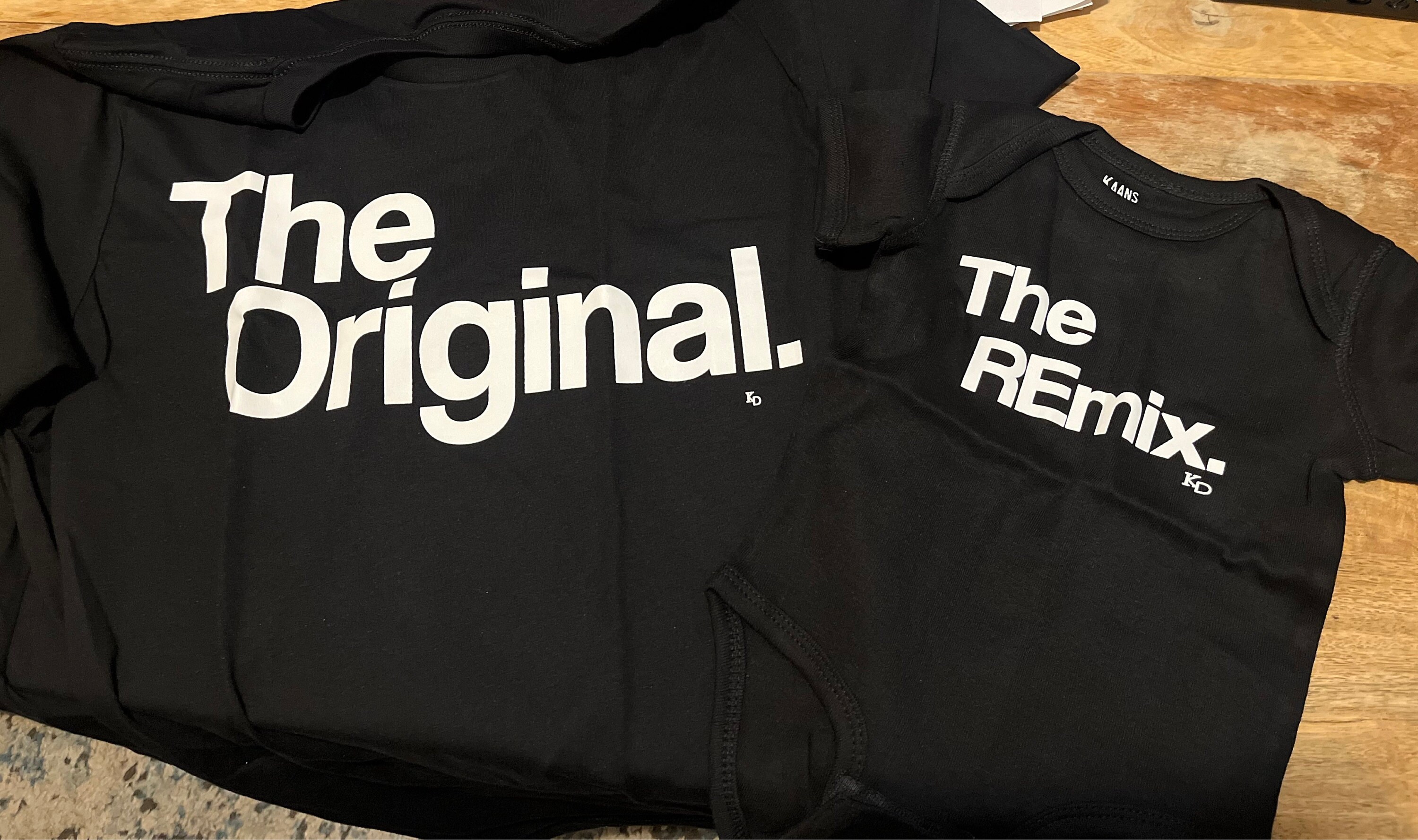 A very popular t-shirt set. Includes 5+ t-shirts for the whole family. Mom and her boys can pair up, so can Dad and his girls, or even cousins or siblings can join in the fun. T-shirts can be customized to suit your family pregnancy announcement or newborn hospital wear or family vacation fun. This set of t-shirts has already gone viral, so be prepared to receive lots of compliments online or when you wear it at a special event!