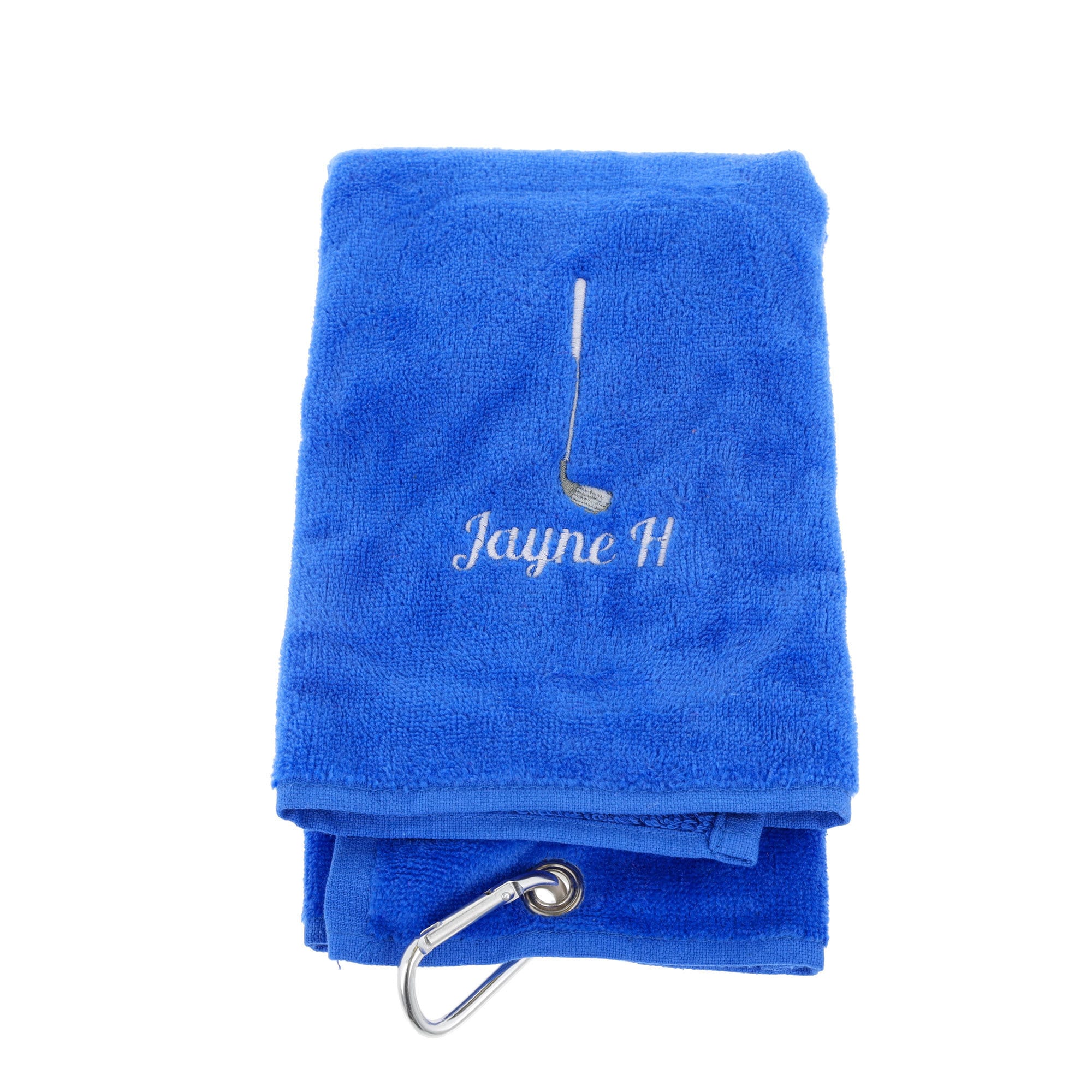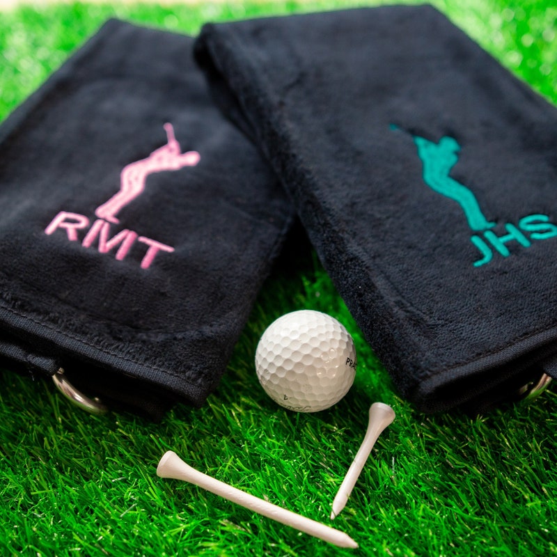 - Personalised golf tri-fold towel with customised embroidered design to suit your preferences.