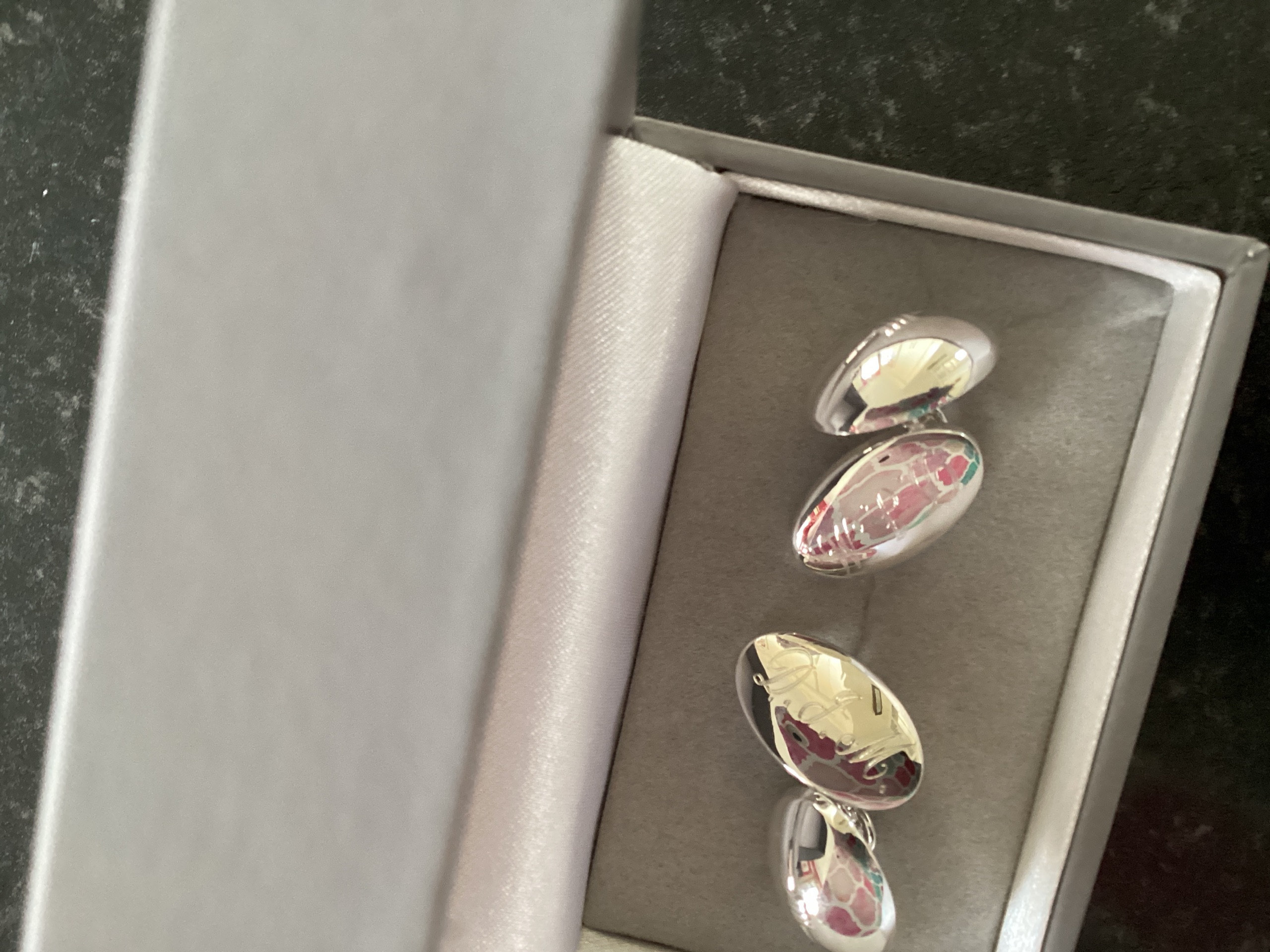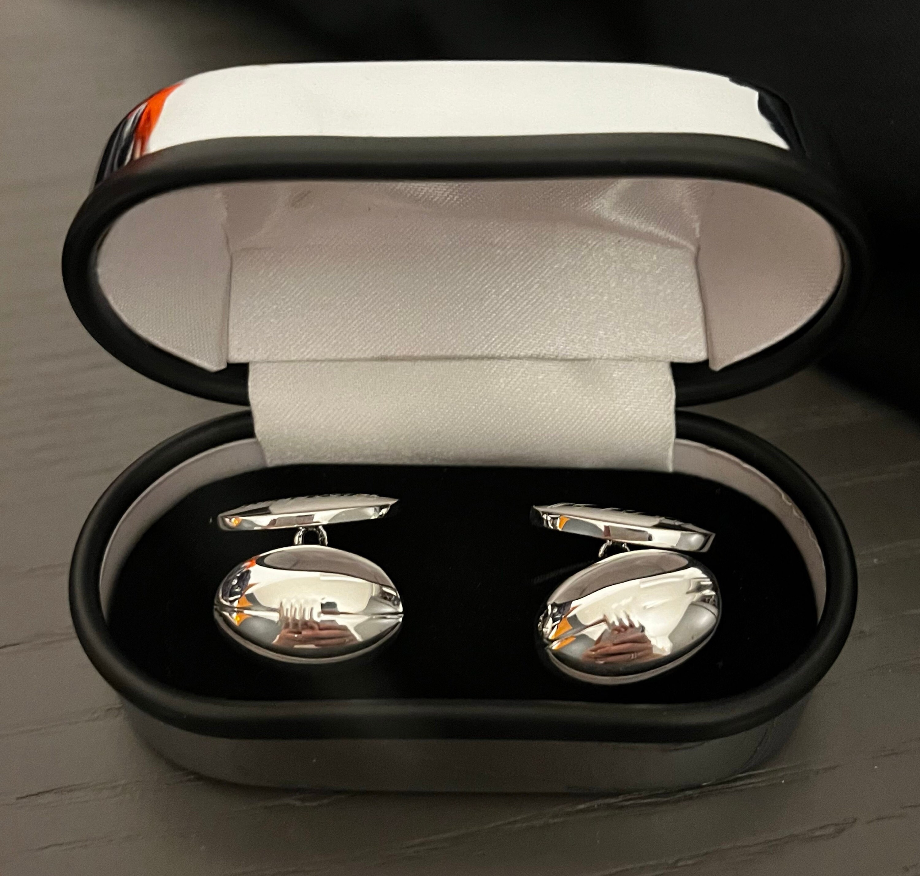 The cufflinks measure approximately 1cm x 1.8cm and come free of charge in a sophisticated grey Carriage Trade cufflink box.