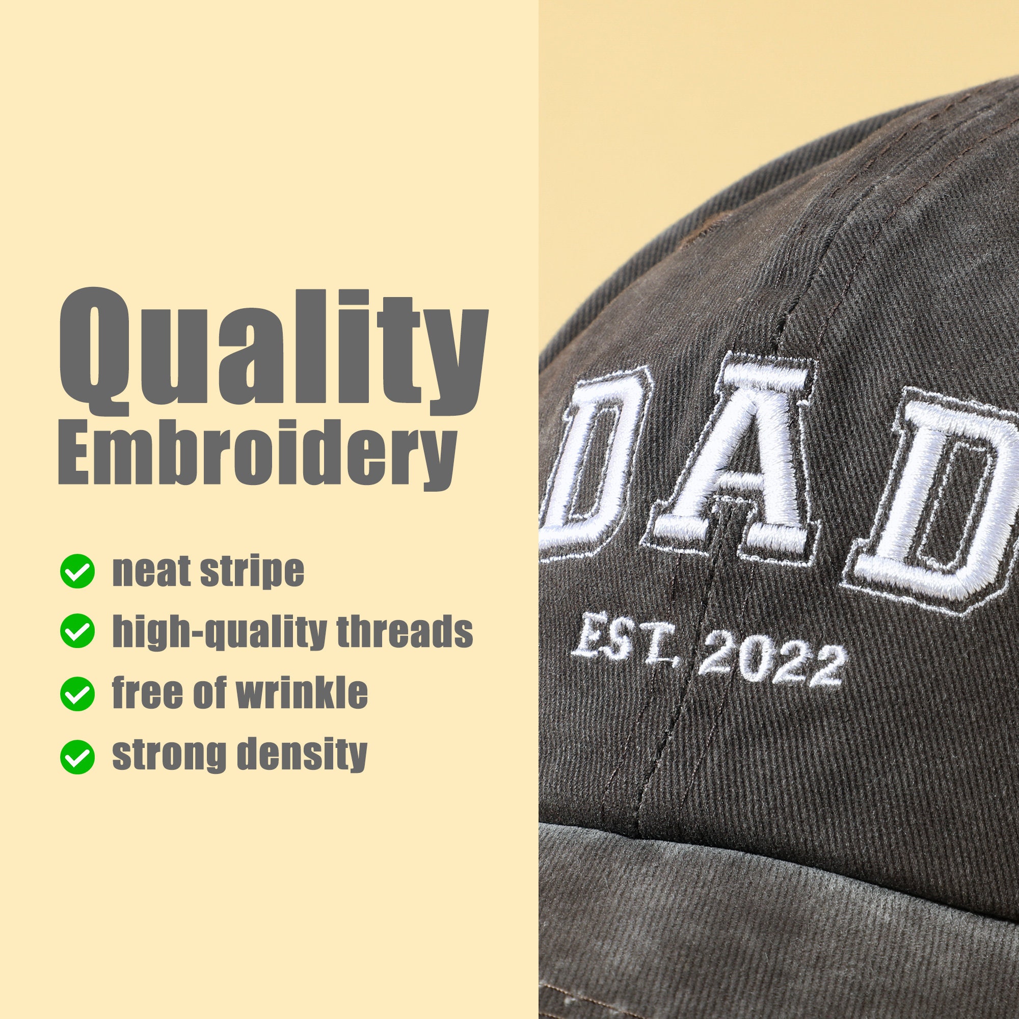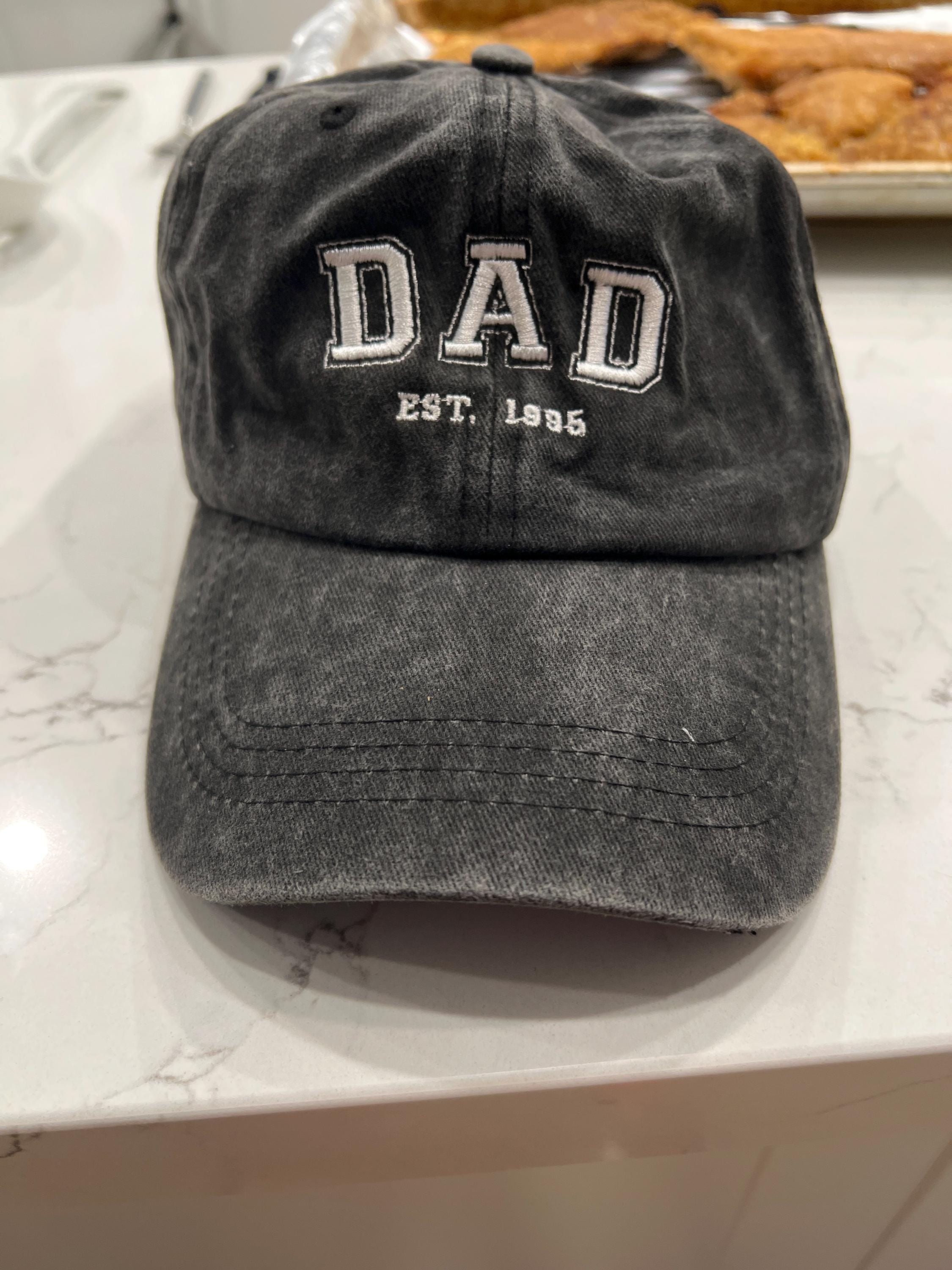 Our Vintage Wash Personalized Hat exudes timeless appeal. Perfect for those who appreciate a classic look and personal style, this hat can be customized with a variety of family titles such as Dad, Mom, Grandpa, Mom, Dog Dad, or Daddy, as well as the year of your choice "Est." It features a vintage washed finish and an adjustable back for a comfortable all-day fit. Whether you're looking to celebrate a new dad, honor a cherished grandparent, or show your appreciation for someone special, this hat is the perfect choice. Honor special milestones or everyday moments with this unique, personalized accessory.