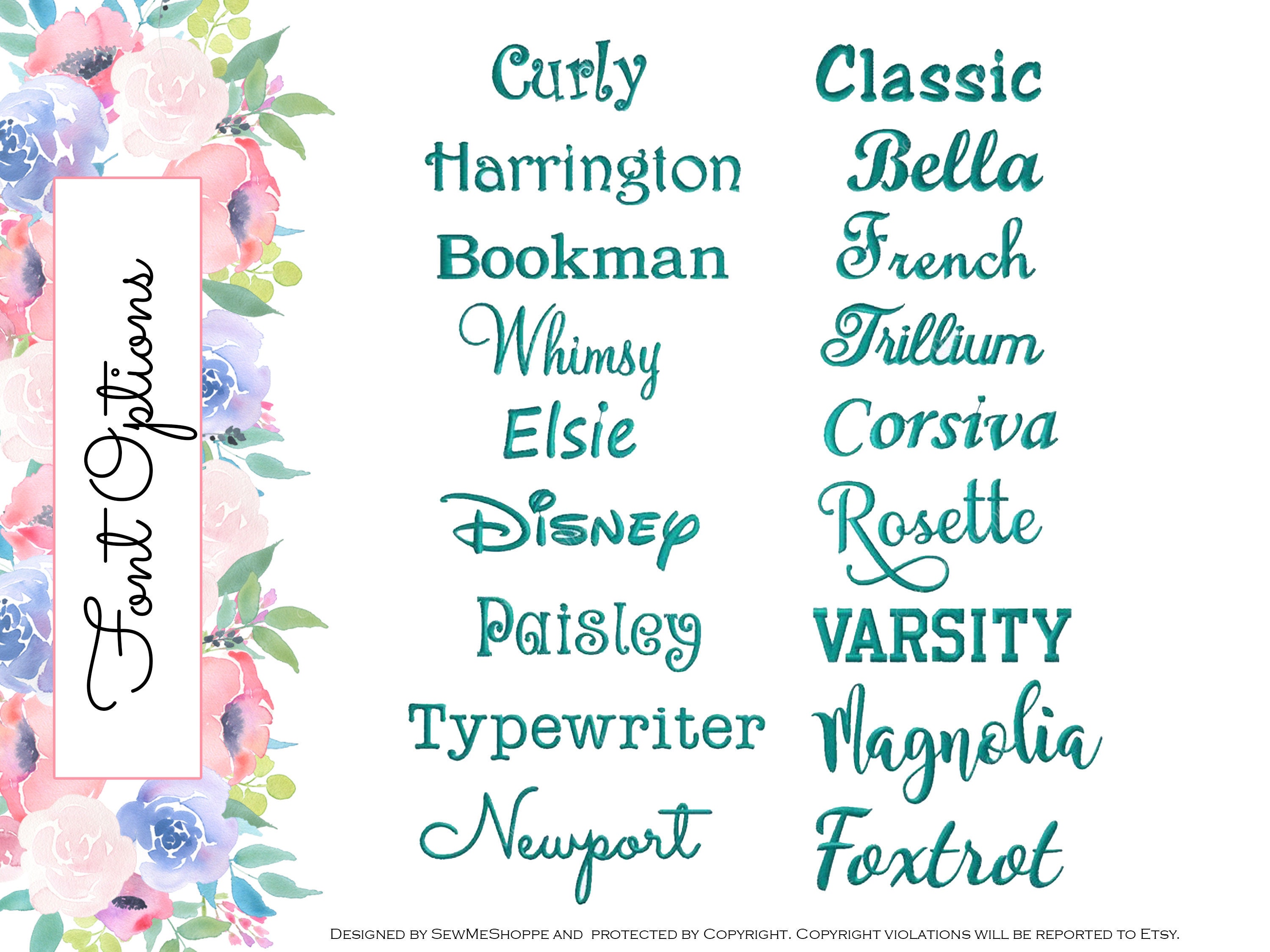 Please note: Alphabetization is First Name, Last Name, Middle Name. Initials will be sewn in the order submitted. Please message us if you have any questions.