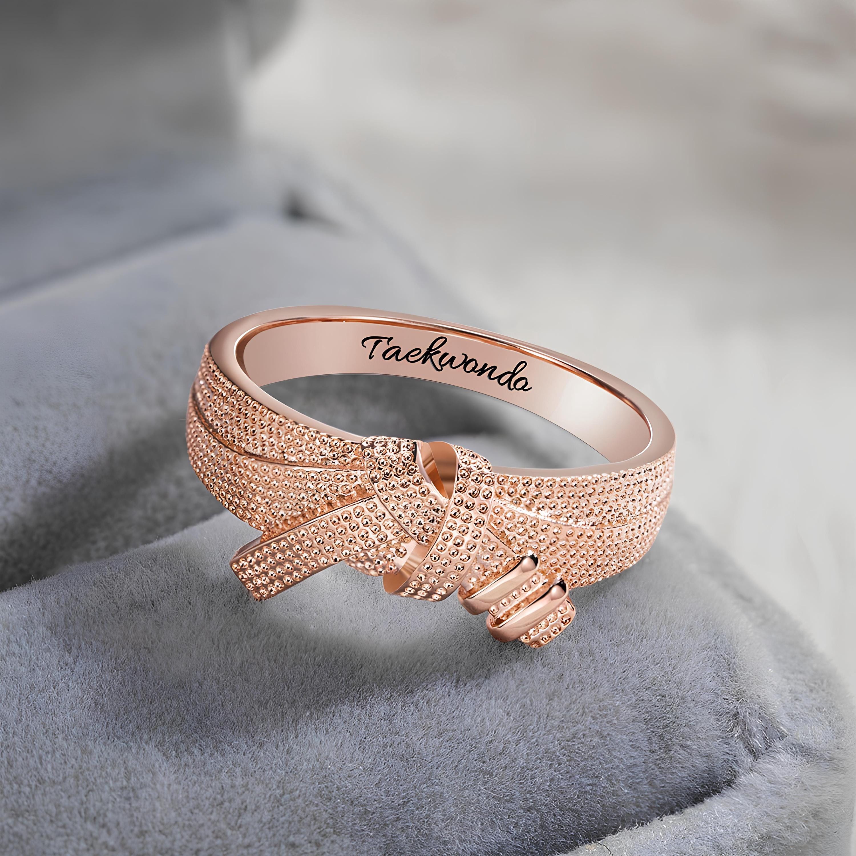 Made from high-quality sterling silver 925, this personalized martial art belt ring is a perfect accessory for any martial art enthusiast. The ring is designed to resemble a black belt, symbolizing the dedication and hard work that goes into mastering the art of Taekwondo. The custom name engraving option allows you to add a personal touch, making it an ideal gift for yourself or a loved one.