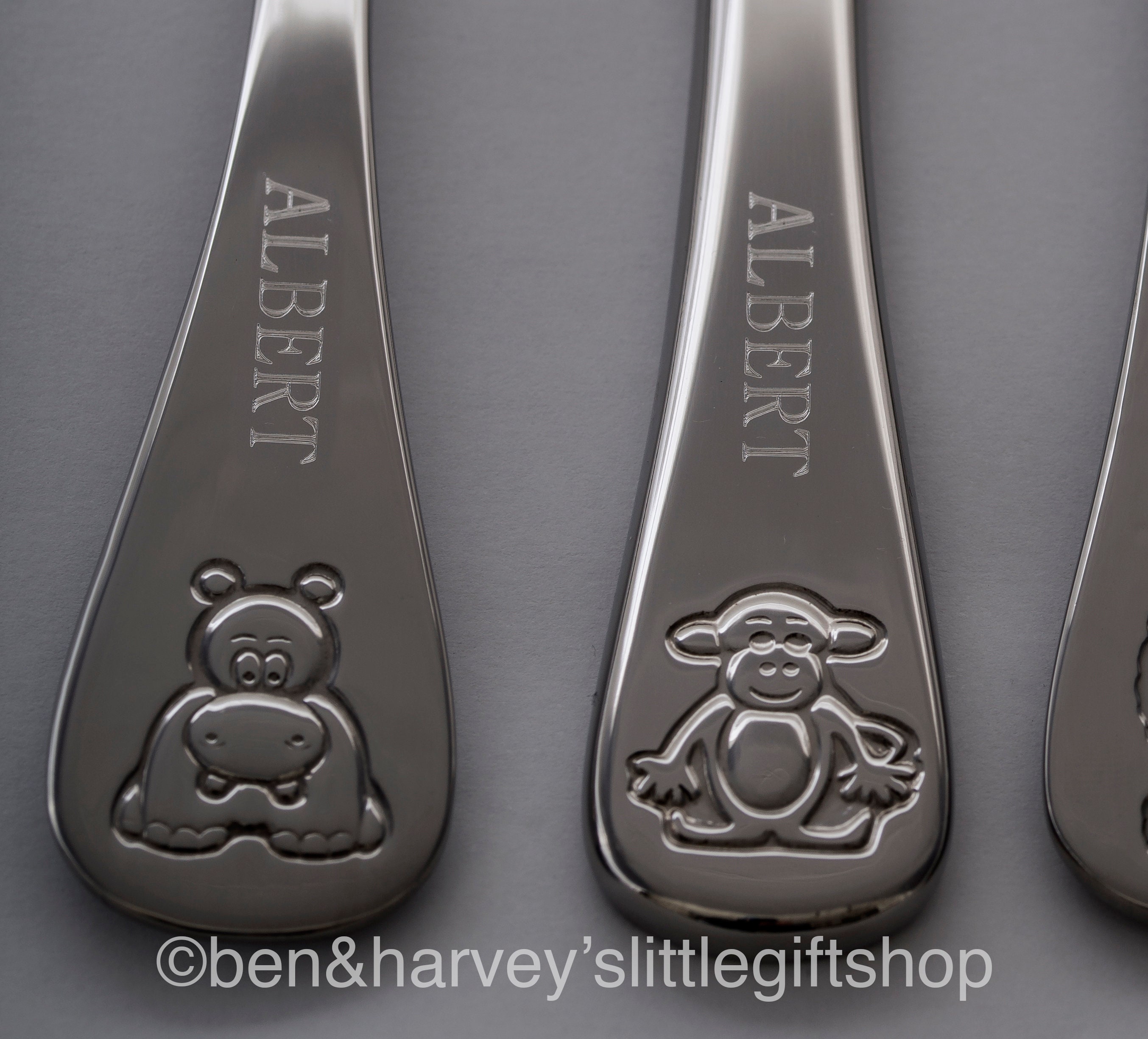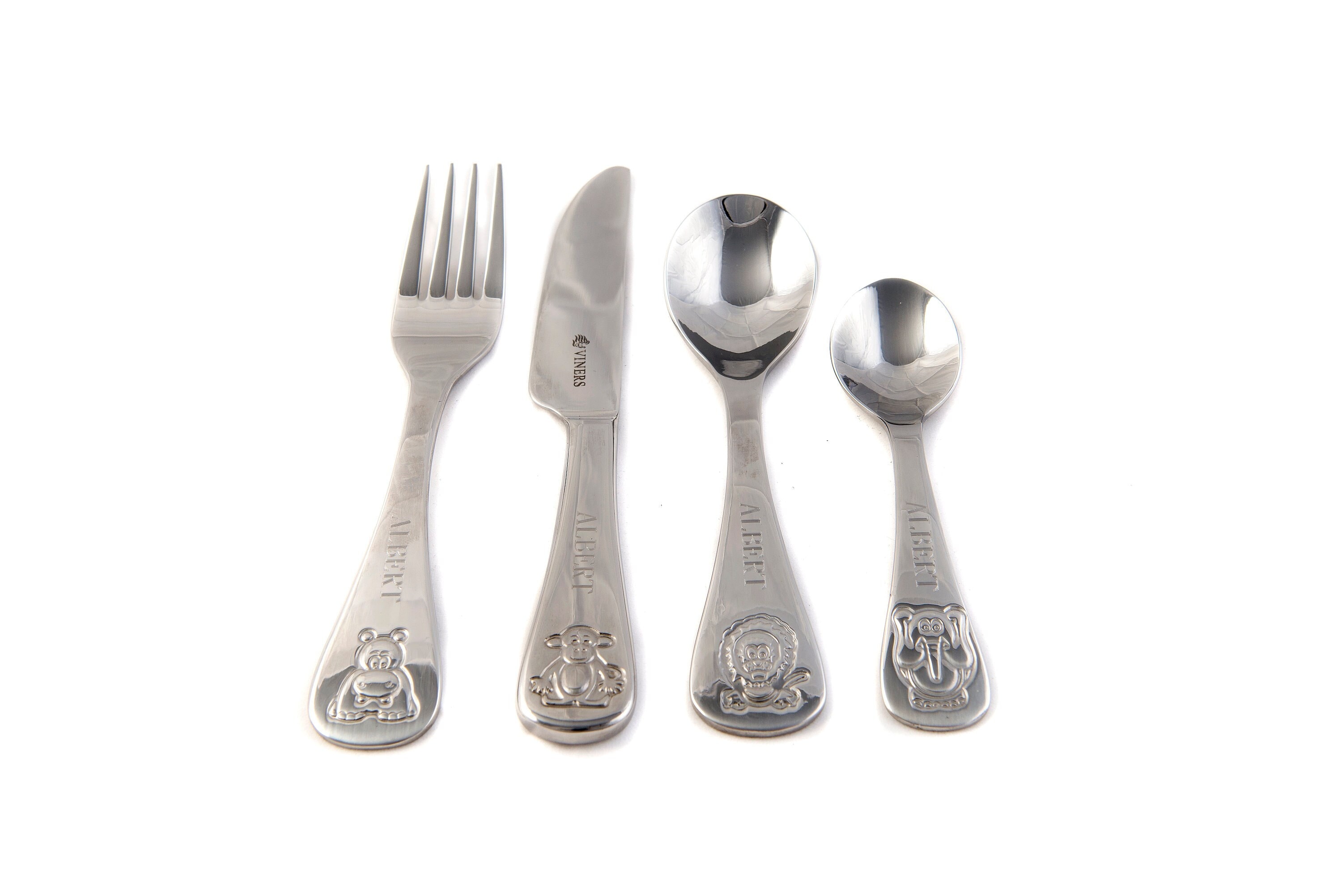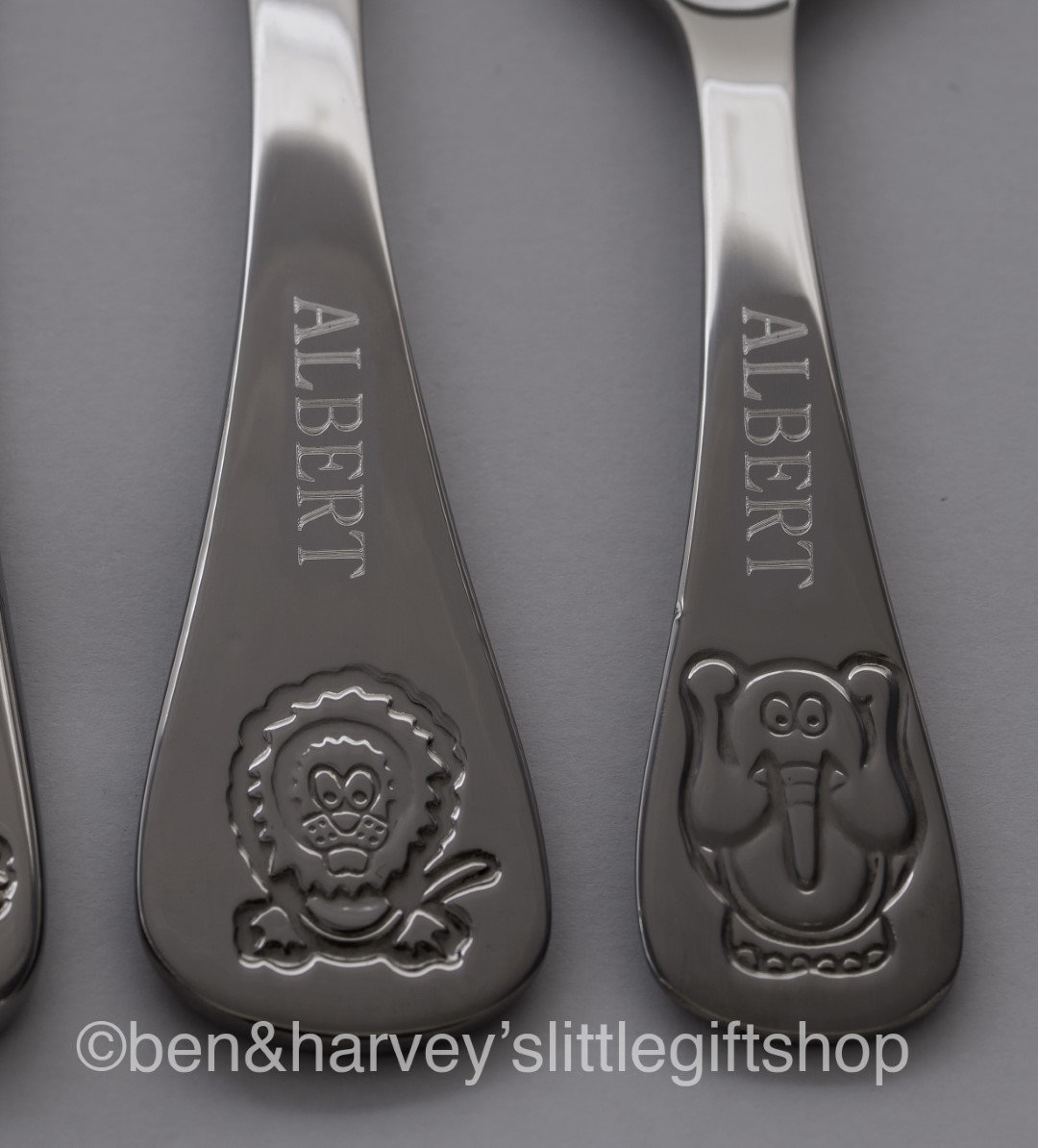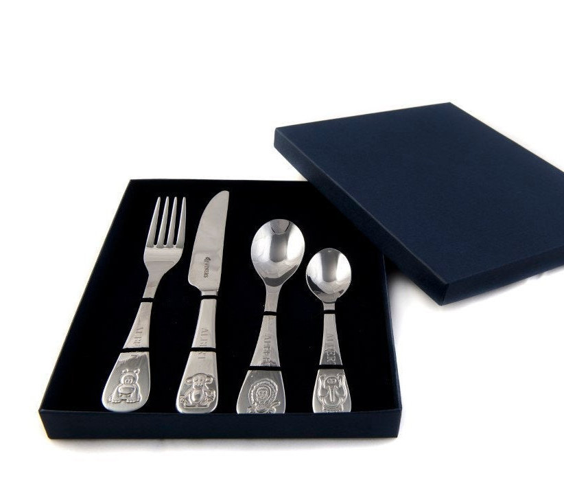 They feature a beautifully embossed animal design of a Hippopotamus, Lion, Monkey and an Elephant on each handle.