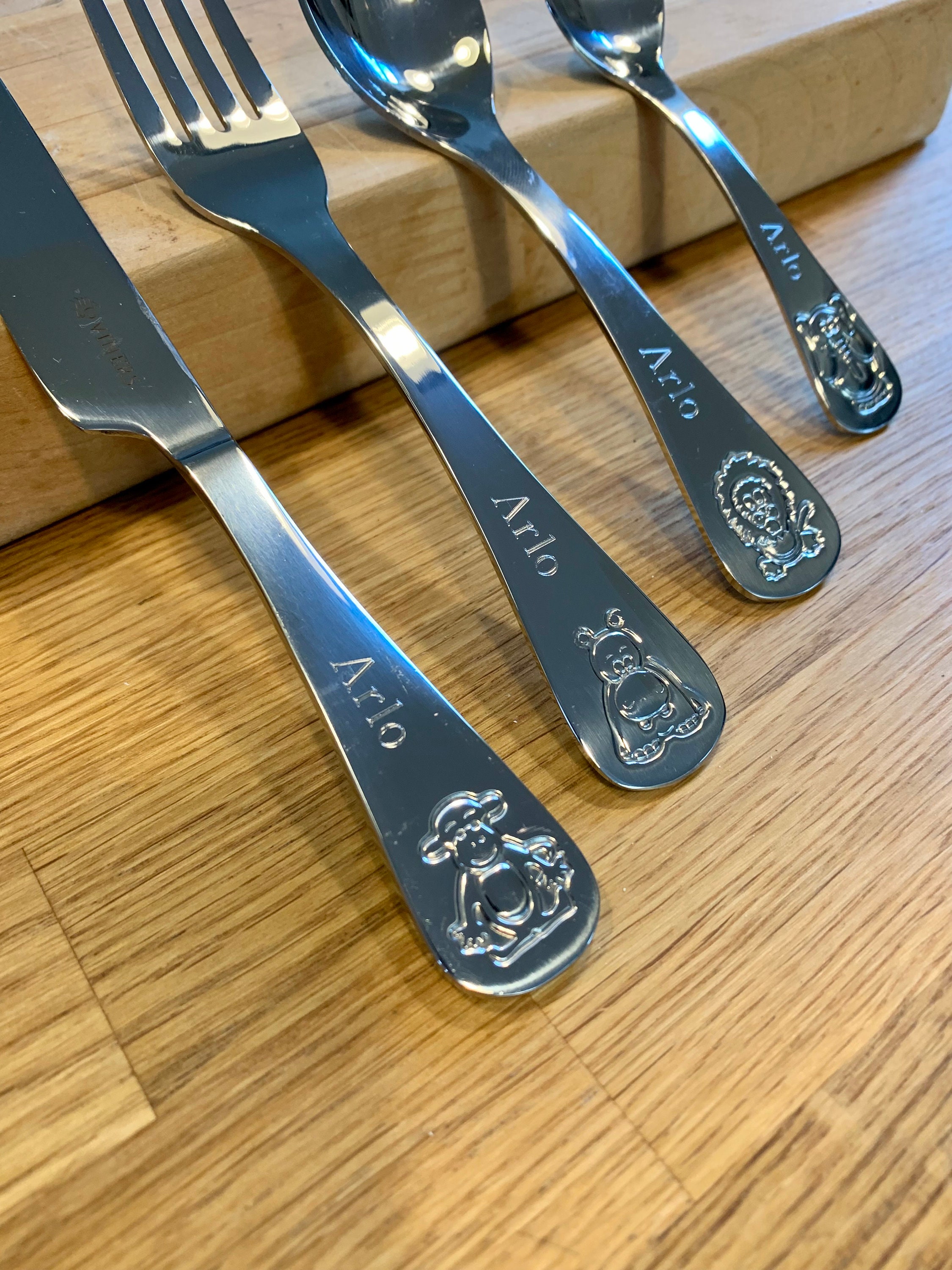 If you like this set, we think you’ll love our brand new Woodland friends 4 piece cutlery set made exclusively for our little gift shop.